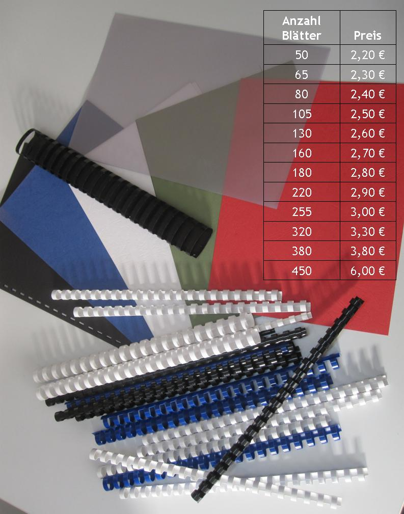 Alle Preise auf dieser Seite sind Preise für eine Bindung. Sollten Sie eine größere Stückzahl benötigen, sprechen Sie uns an. Hier kommen wir Ihnen gerne im Preis entgegen.